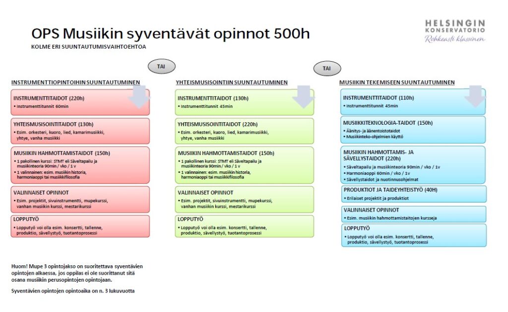 Helsingin Konservatorio, musiikin laajan oppimäärän opetussuunnitelma (päivitetty 31.5.2023)