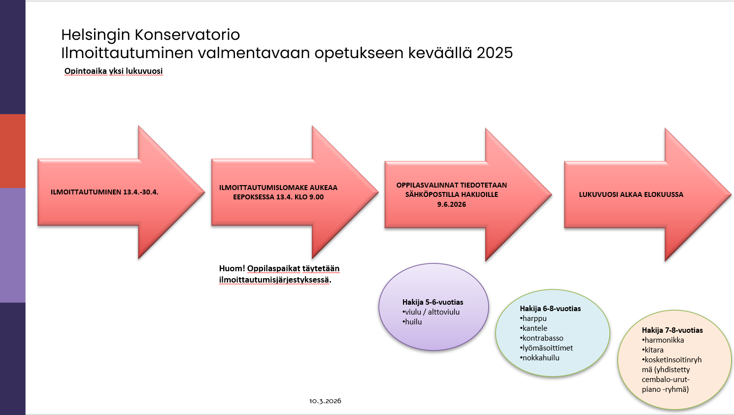 Valmentavaan opetukseen ilmoittaudutaan vain yhden kerran (ei hakemuksia eri soittimiin). Ensisijaisen soittimen lisäksi voit ilmoittaa myös toisen vaihtoehdon.